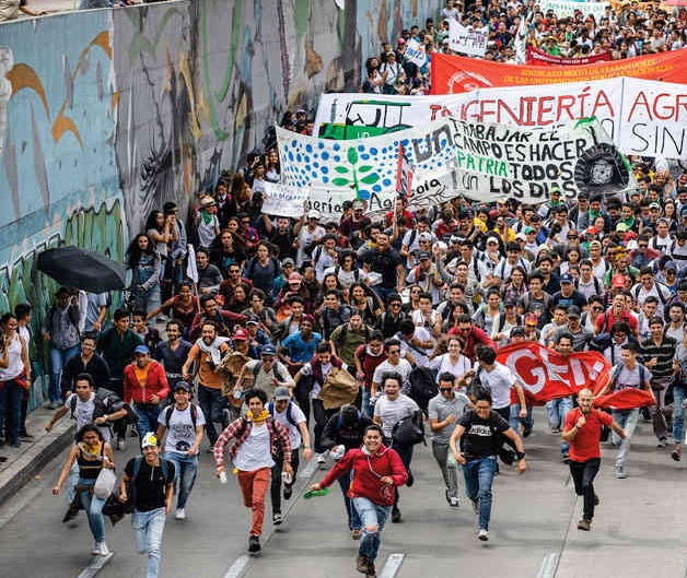 16. Por el manejo dado a las marchas estudiantiles y el apoyo brindado al ESMAD, cuyos miembros han actuado con excesiva violencia.