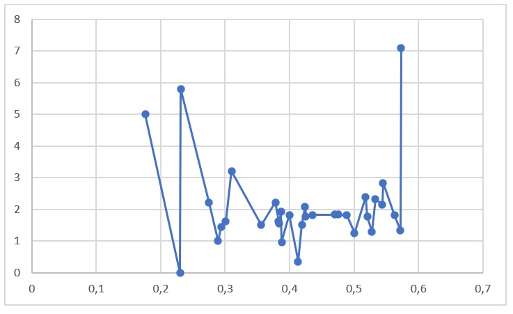 En la gráfica 4 se trata de establecer si hay una relación entre tasa de vacunación y la tasa crecimiento diario de los infectados del 20 de octubre al 9 de noviembre. En general se da correlación como se aprecia para los datos de la parte derecha de la gráfica en que alta vacunación está vinculada a más baja tasa de crecimiento de os infectados diarios, pero hay tres casos que se salen de esta tendencia, que se muestran en la parte izquierda, que son los xx