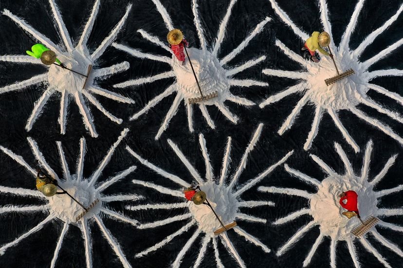 Esta imagen ha ganado el premio en 2022 de la categoría de fotografía abstracta del Drone Photo Awards, el más grande e importante concurso anual de fotografía aérea. La tomó Saurabh Sirohiya y la tituló ‘Trabajadoras en una salina’.