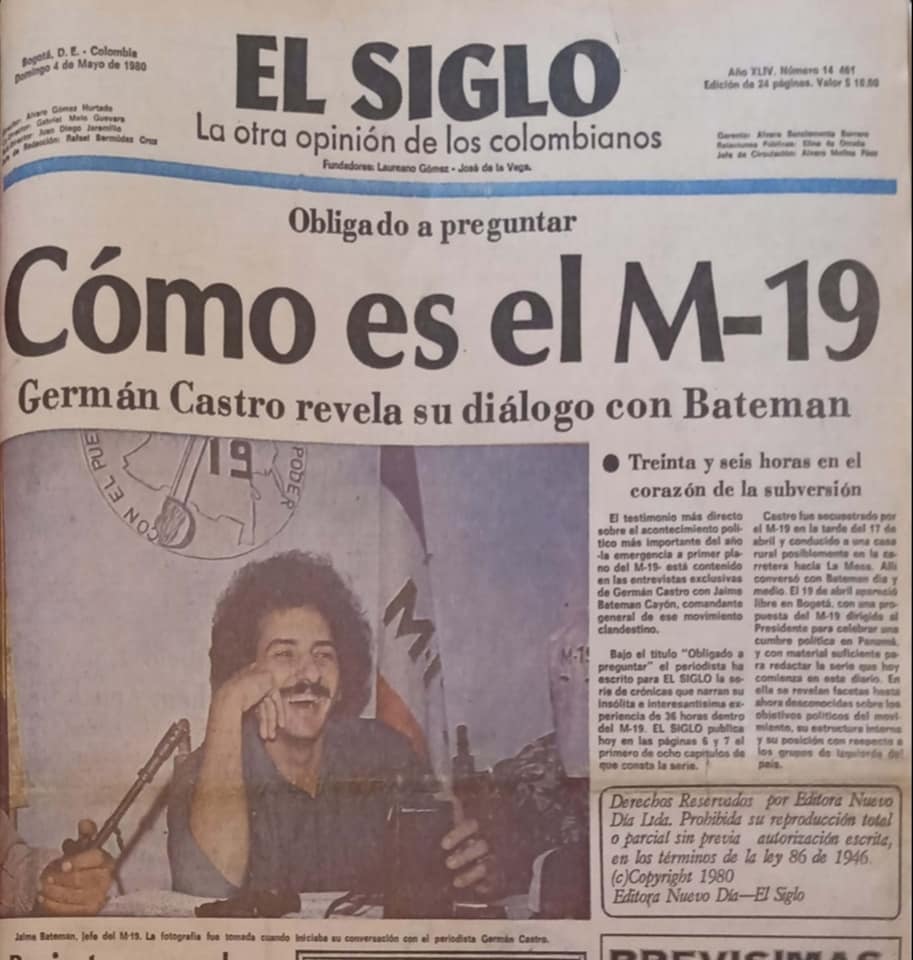 Apenas concluyó la toma de la embajada de la República Dominicana por el M-19 en 1980, el comandante general de esa organización, el samario Jaime Bateman Cayón, apareció por vez primera en público luciendo un afro en una histórica entrevista con el periodista Germán Castro Caycedo. Su publicación por entregas cuadruplicó la circulación del periódico El Siglo y llevó al poco tiempo a una edición especial en forma de revista, que se vendió como pan caliente.