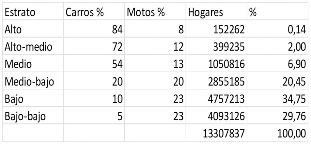 Las cifras señalan que en Colombia los vehículos y motos son utilizados por todos los estratos, no solamente por el estrato 6 como afirman algunos senadores y los economistas conservadores.