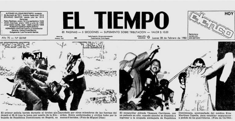 El 27 de febrero se cumplen 43 años de la toma de la Embajada de República Dominicana por el M-19, hecho que durante dos meses convirtió a Colombia en centro de atención mundial, pues entre los 14 embajadores secuestrados estaba el de EEUU y el nuncio apostólico. La única baja letal fue la del guerrillero Carlos Arturo Sandoval Valero, nativo del Líbano (Tolima), quien no había cumplido los 18 años. El operativo fue ejecutado por el comando Jorge Marcos Zambrano, nombre de un joven caleño asesinado cinco días atrás tras ser capturado por la III Brigada del ejército, y se denominó Operación Democracia y Libertad, pues la carencia de tales derechos marcaba la realidad del momento histórico en Colombia.
