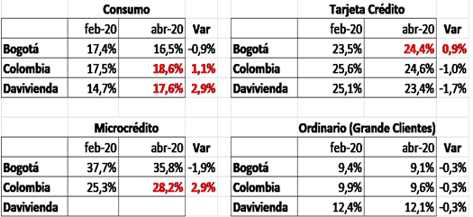 Lo más descarado es que hayan subido las tasas de interés en plena crisis. Tomando cifras oficiales de la Superfinanciera analicé las tasas de los bancos de Bogotá, Bancolombia y Davivienda. En el crédito de consumo, el de más amplio uso, aumentaron las tasas así: Bancolombia 1.1% y Davivienda 2.9%; en microcrédito, Bancolombia aumentó la tasa en 2.9%. Y aunque el Banco de Bogotá las disminuyó en 1.9%, la tasa es exageradamente alta: estaba en 37.7% y bajó a 35.8%, lo cual no es gran concesión. Al revisar la tasa ponderada de captación de los bancos de acuerdo con cifras de la Superfinanciera, no es superior al 1.9%. No cabe en la mente que un banco pueda cobrar una tasa de colocación del 37.7%, tampoco es razonable que el Banco de Bogotá haya subido la tasa de la tarjeta de crédito, a pesar de ser muy alta. De otro lado, si se analiza quienes son los dueños mayoritarios de esos bancos, no son más de cinco personas o familias. Esto no permite disminuir la gran concentración del ingreso, de la riqueza, porque frena el desarrollo y no incentiva la producción. Esas ganancias generalmente van al exterior como inversiones o quizás a paraísos fiscales.