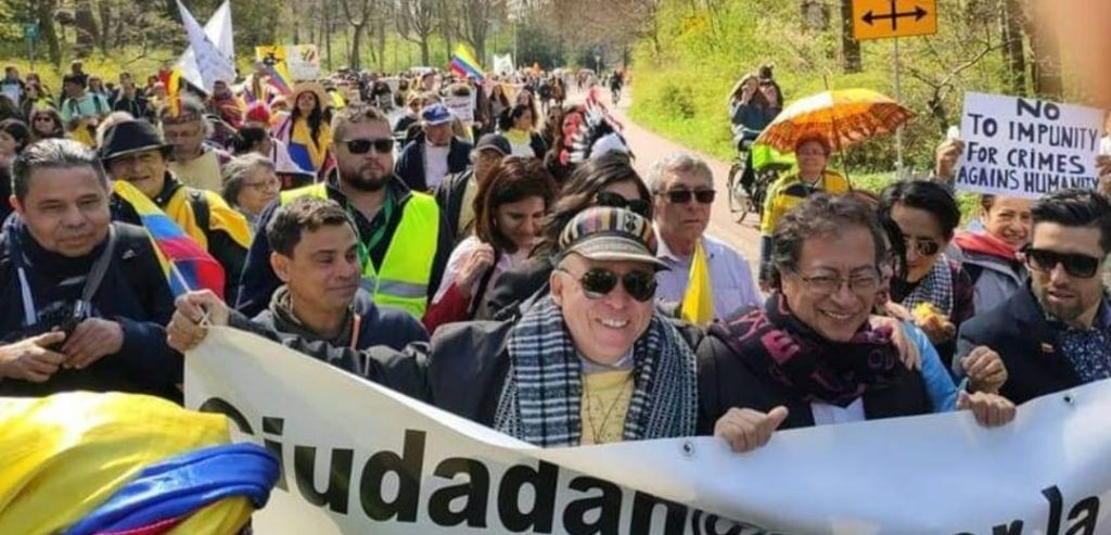 Ya como precandidato presidencial, nos vimos entre 2009 y 2010. Cuando ganó la Alcaldía de Bogotá en 2012, fui invitado a su posesión. Lo acompañamos de nuevo para su segunda aspiración a la presidencia en 2018. Luego, cuando lanzamos al mundo la caminata desde París hasta la Corte Penal Internacional (CPI) en La Haya, salimos el 28 de marzo del 2019 y el 5 de abril culminamos la última etapa, en compañía de más de 1.700 colombianos, hombres y mujeres llegados de los rincones del planeta. ¿Para qué semejante viaje a pie? Para pedir la apertura de procesos penales por los crímenes de guerra y lesa humanidad cometidos durante los gobiernos Uribistas.