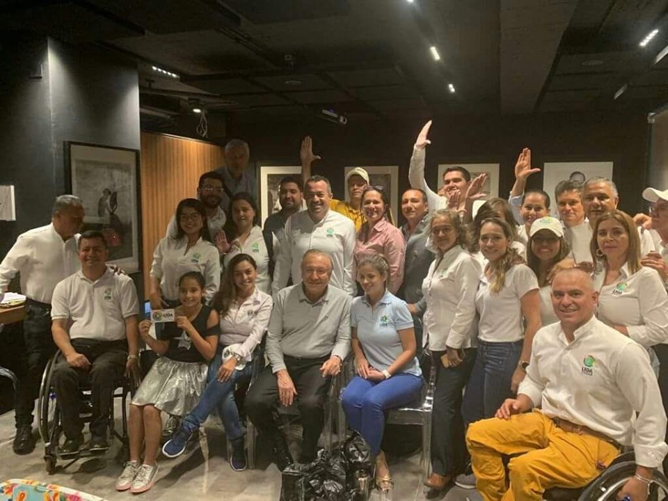 Va cualquiera de ustedes -o de nosotros- a la página de Anabel Tarazona en Facebook y encuentra que por ninguna parte dice que ella sea candidata, pero sí aparece una foto titulada “Somos la asamblea de Santander”, donde un grupo de personas rodea a Rodolfo Hernández y el lugar más visible es para Moisés Fuentes, sentado en su silla de ruedas, luciendo un vistoso pantalón y una camisa blanca con el emblema de la LIGA. (Ver foto).