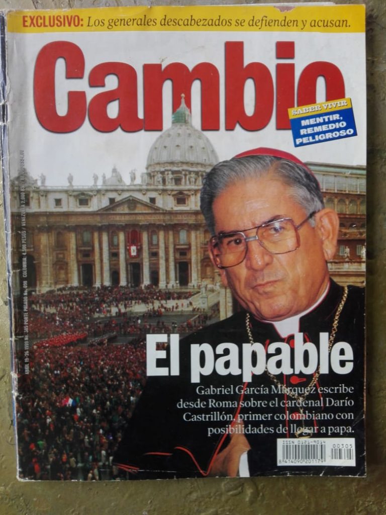 El autor del párrafo anterior se llama Gabriel García Márquez y lo escribió durante un viaje a Roma, para entrevistar al cardenal, en el mes de abril de 1999, como parte de una crónica para la revista Cambio, titulada ‘El papable’, donde se refirió a un tema de gran interés periodístico: las posibilidades reales que tenía el cardenal Darío Castrillón Hoyos, de ser el primer sucesor de San Pedro en El Vaticano, tras la muerte de Karol Wojtyla.