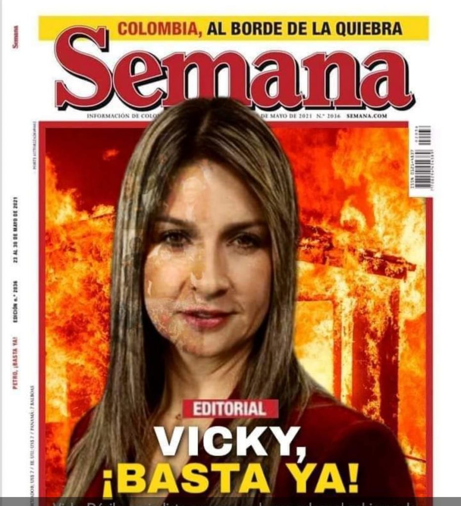 El negativo y tendencioso mensaje del fotomontaje se agranda con el texto Petro, ¡Basta ya! con el cual pretenden imponerles a sus lectores una conclusión y una lectura no solo sesgada sino peligrosa, pues expone al político de la Colombia Humana a eventuales retaliaciones por parte de grupos al margen de la ley (paramilitares), incluso de esos civiles llamados “gente de bien” que al dejarse convencer por lo consignado en la portada, podrían tomar justicia por su propia mano y atentar contra la vida del exalcalde de Bogotá. La decisión editorial de Vicky Dávila la ubica a ella y al medio que representa, en el ejercicio de un periodismo incendiario, confrontacional, irresponsable, apocalíptico, vandálico y alejado de una mínima ética desde la que, como ciudadana y periodista, debería de actuar. Ante la demencial carátula, a Vicky Dávila hay que decirle ¡Basta ya!